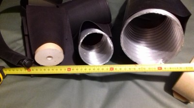 kuvissa sukka putken päällä ennen lämmitystä/kutistumista, kutistumisen jälkeen muovautuu tiiviisti putken pinnalle